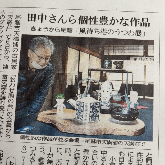 お知らせしていました、尾鷲・天満荘での展覧会『風待ち港のうつわ展』、たった3日間という短い期間でしたが、たくさんの方に来ていただき誠にありがとうございました。